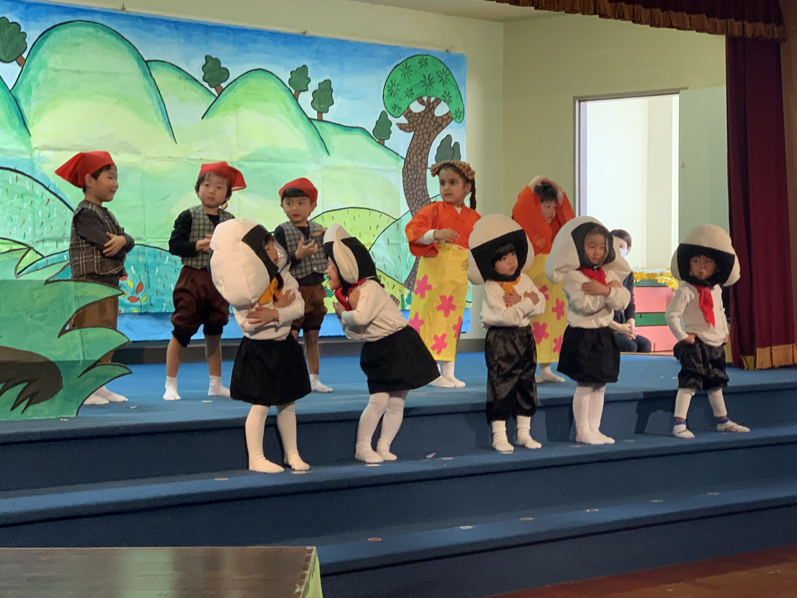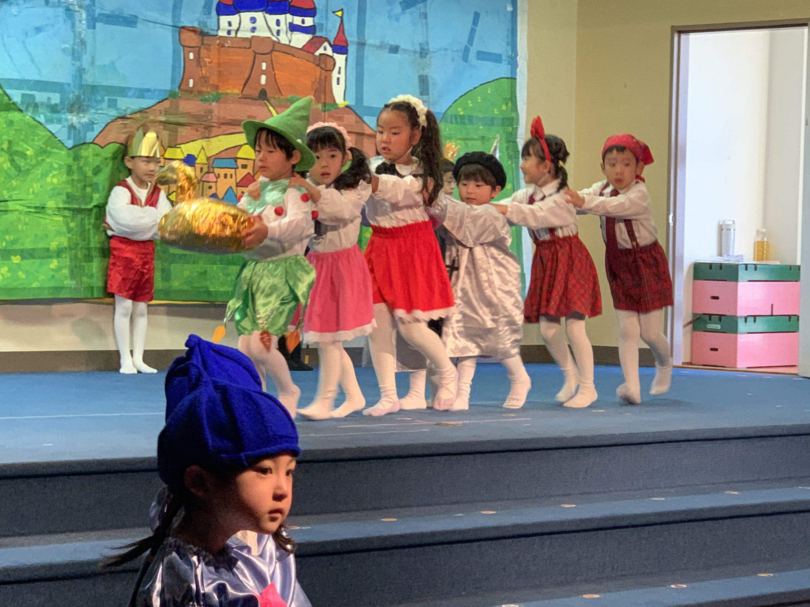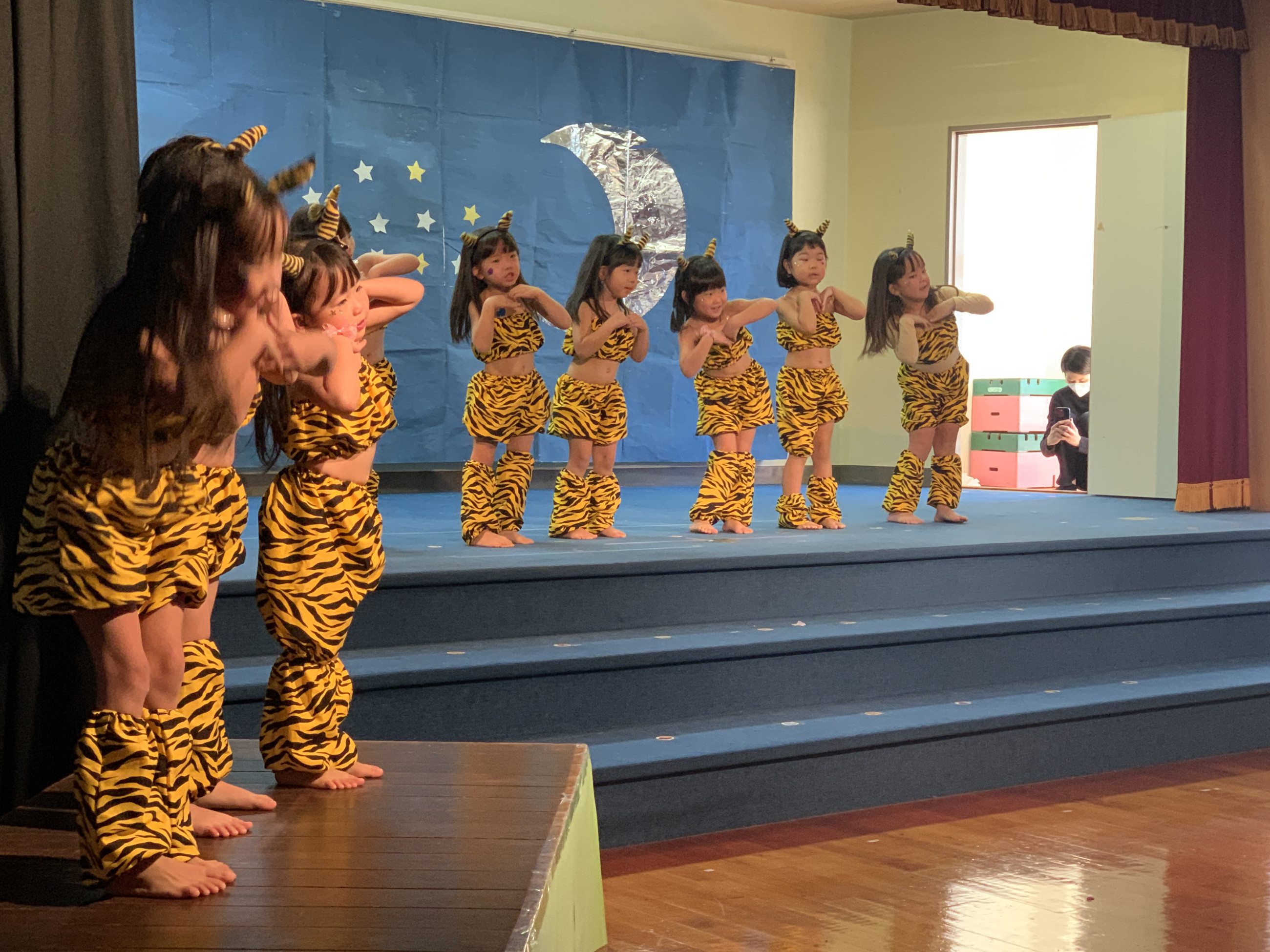 ステージ上では、ドキドキした表情で幕が開くのを待っている子、