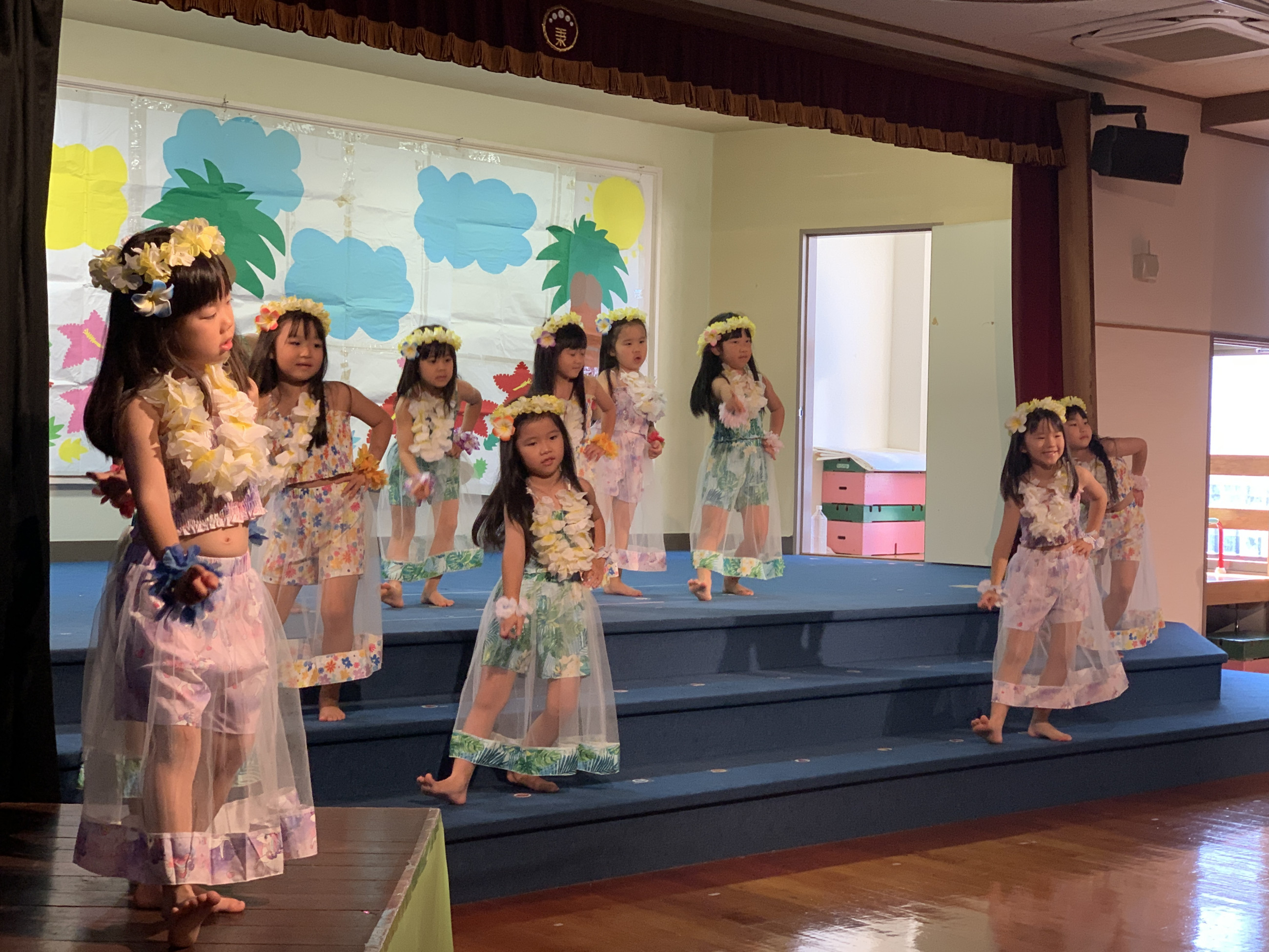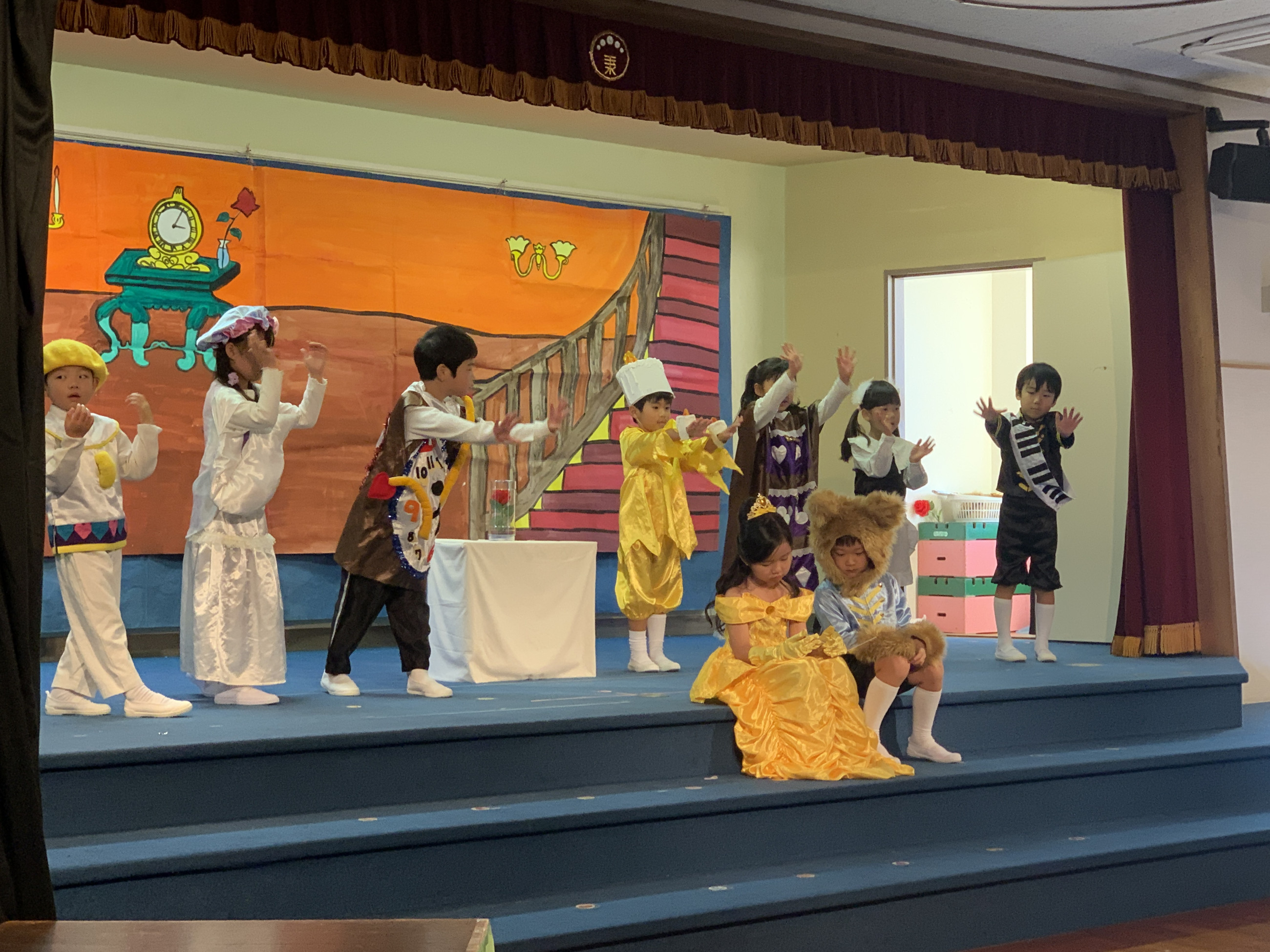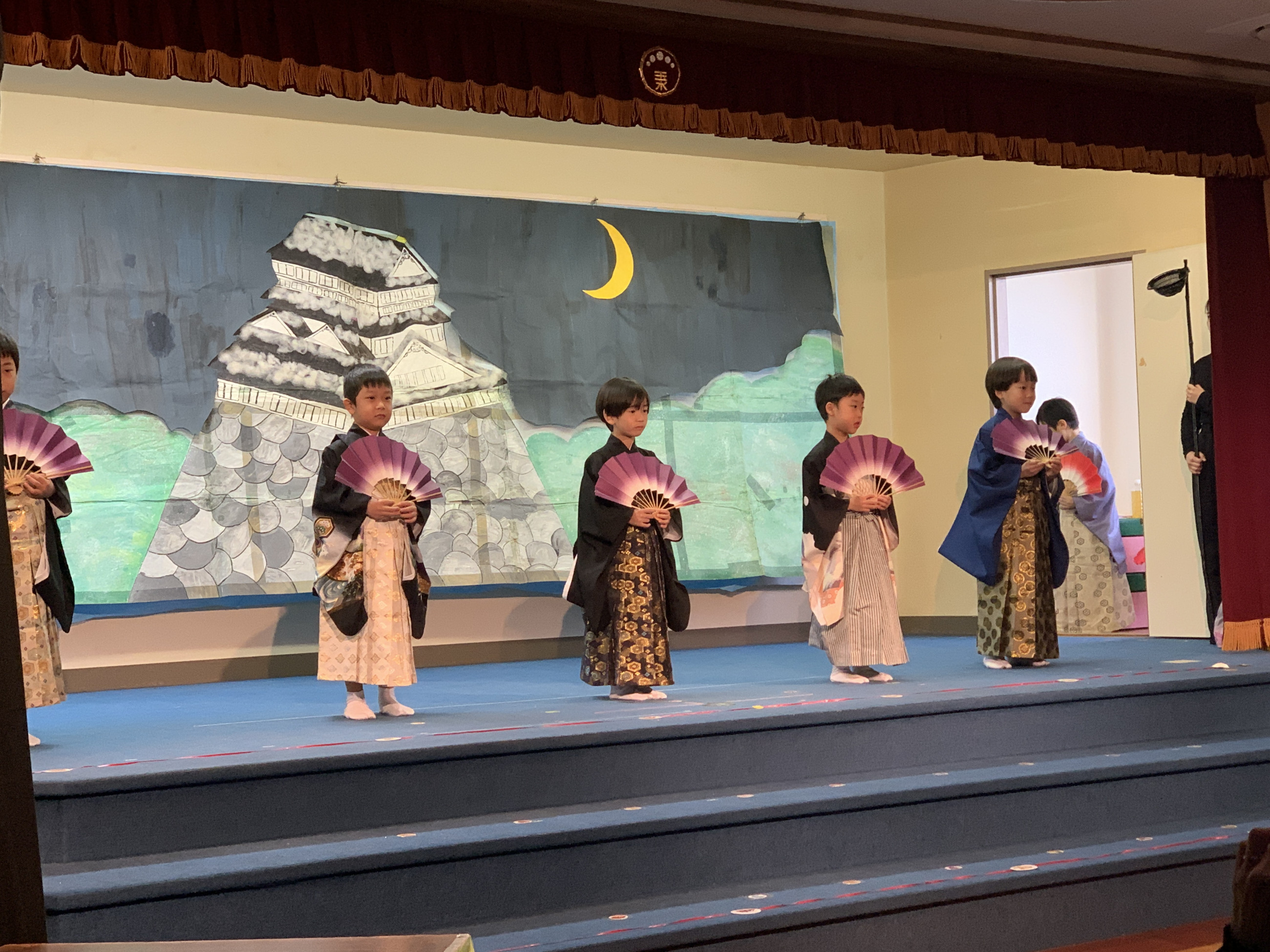 ステージ上では、ドキドキした表情で幕が開くのを待っている子、